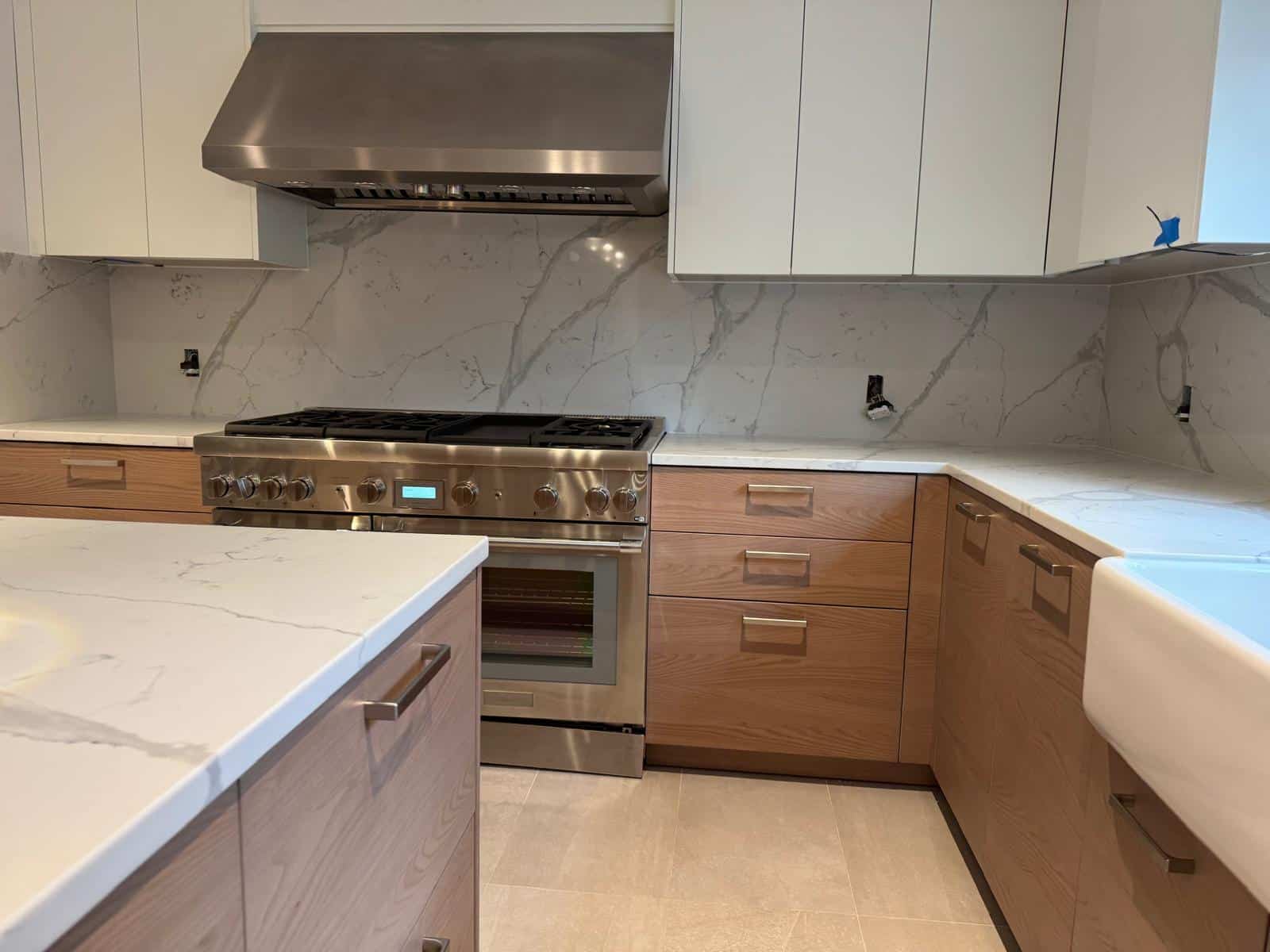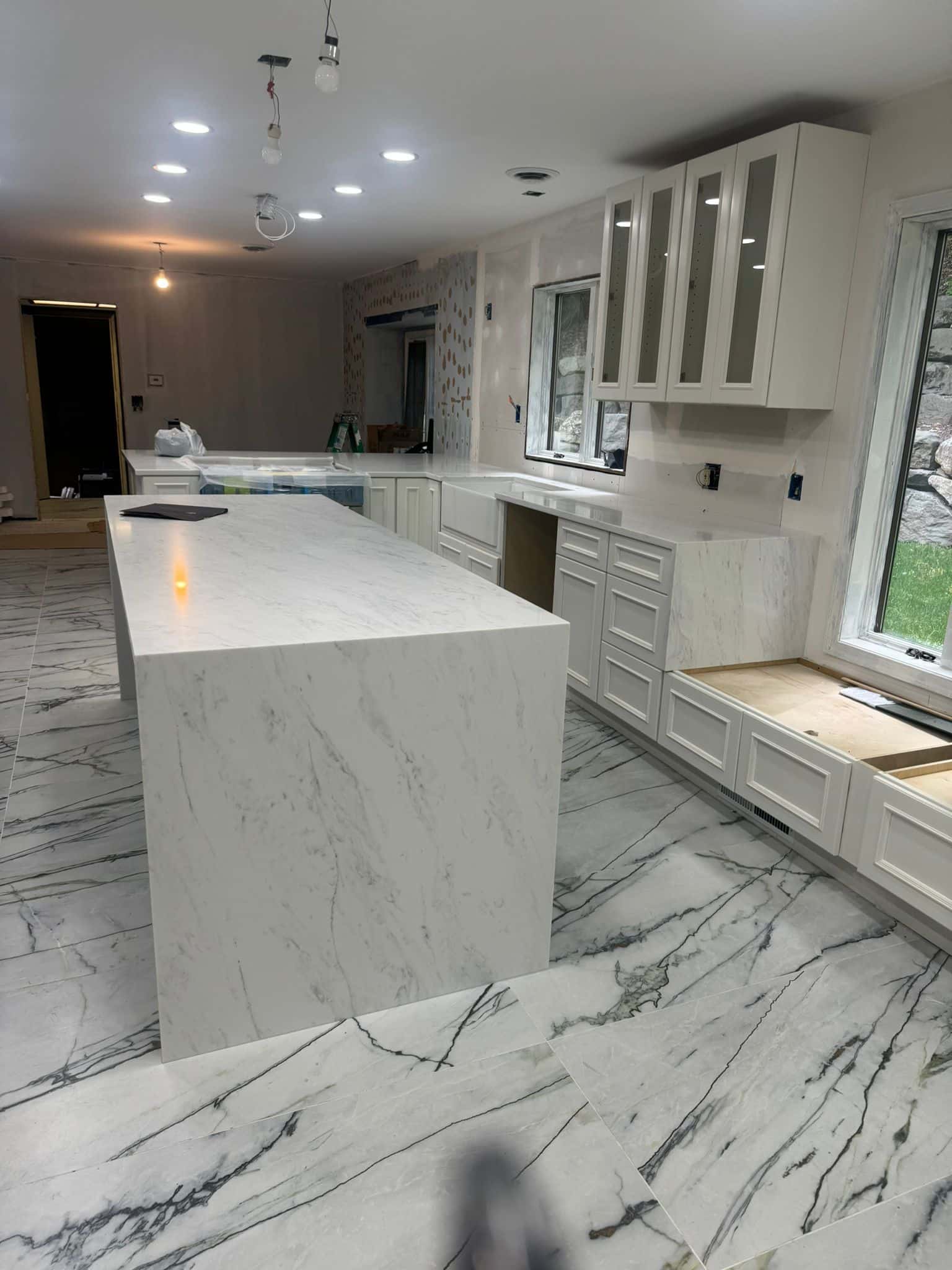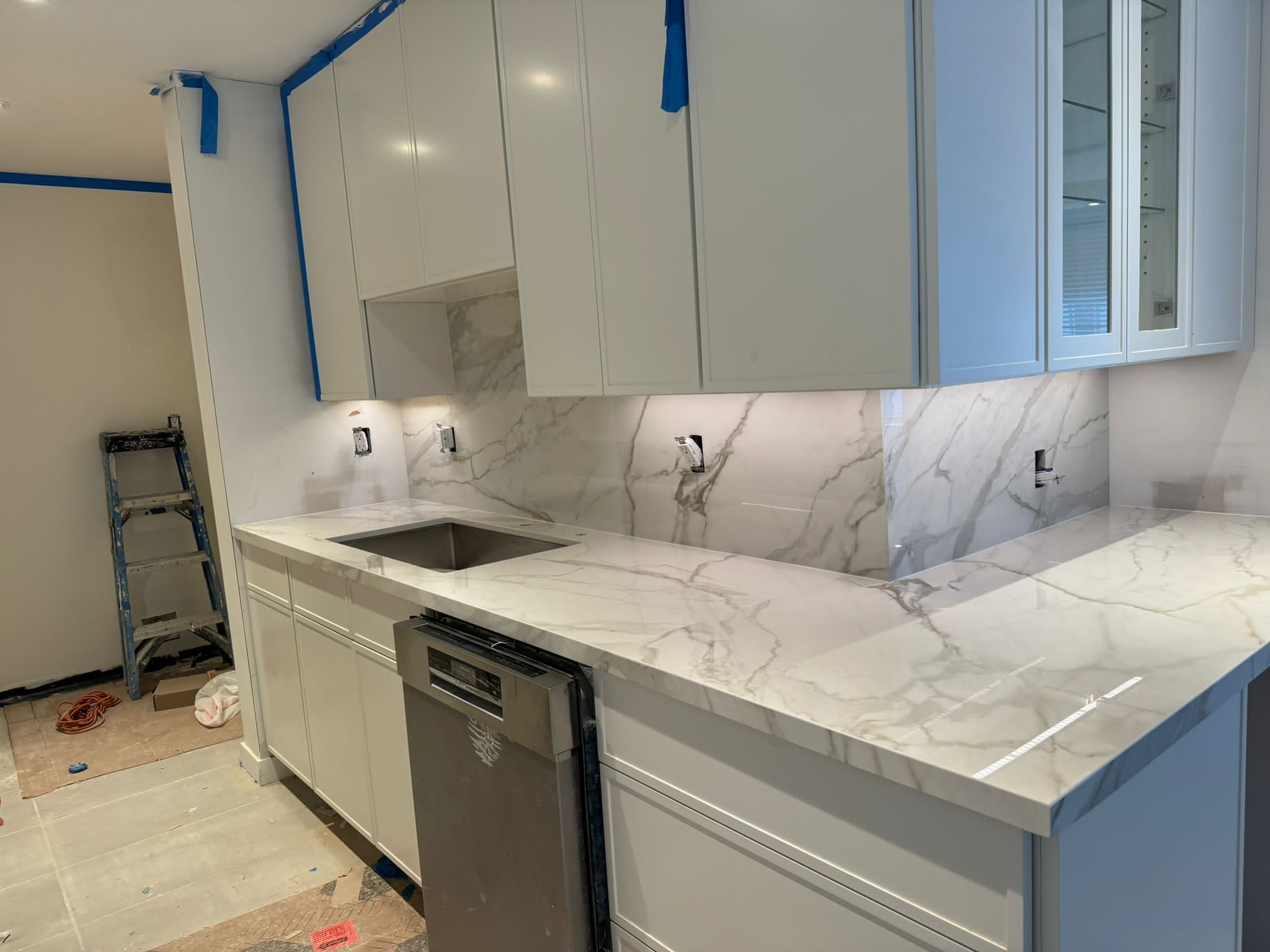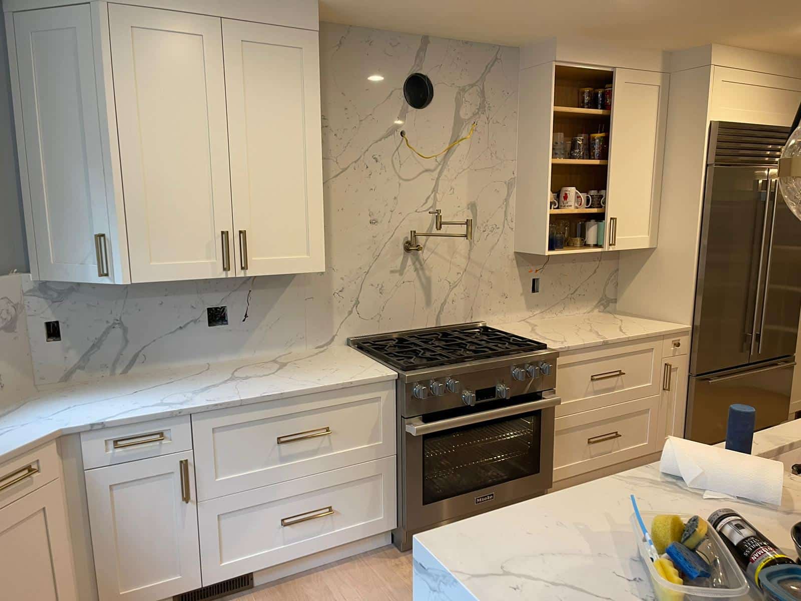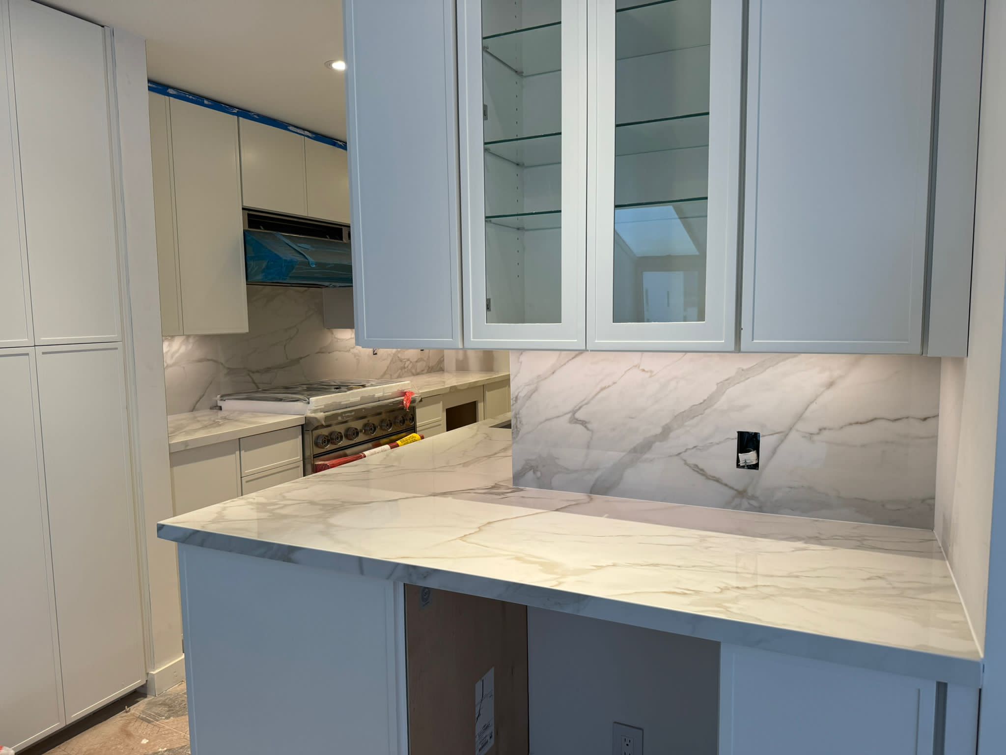 As the one-stop shop for cabinets and countertops, we offer a wide range of products and services for kitchen and bath. We aim to make the remodel process as smooth as possible for you with our expertise and unprecedented assistance. That is why you can request a free quote or ask for an exclusive design from our professional designers. As Bergen Marble and Granite , we pride ourselves in our exceptional service and incomparable quality. As a result, you can demand free measurement, free estimation, free quote and more. In addition, you can see the slabs at our address before making a commitment. This way, you can make better decisions regarding your design. In Bergen Marble and Granite, we create one of a kind designs for your needs regarding fireplaces, countertops, cabinets, vanity tops, laundry rooms, kitchens, bathrooms and much more. You can discover both indoor and outdoor applications of our gorgeous marble slabs, durable and functional quartz slabs, functional and stylish kitchen cabinets, and much more in our portfolio below. In order to come up with tailor made solutions for your needs, we offer many different cabinet styles and top tier brands. In accordance with your taste, preferred layout, living space and budget, you can choose from thousands of different alternatives. If you want to create modern and sleek designs that brings a fresh approach to minimalism, you can opt for using flat panel cabinet doors. If you are after a more classic look, traditional raised panel cabinet doors will make you very happy. You can create inviting and warm spaces inspired by country style or recreate a cottage-like look in your kitchen. Bringing together modernity and functionality, shaker style cabinet doors will allow you to find a middle ground between the past and future. You can incorporate shaker cabinets into both traditional and contemporary designs. You can choose your favourite cabinet style and design from a wide range that encompasses best brands in the industry including Wolf Cabinets, Alusso Cabinets, Cubitac Cabinets, Adornus, St. Martin, FGM Cabinetry, Fabuwood and Forevermark Cabinetry. You can choose top quality countertops that will highlight the beauty of your kitchen cabinets while complementing your one of a kind interior design. In order to create tailor made solutions for your needs, we offer different materials for countertops: Durable and sleek granite, traditional and impressive marble, contemporary and improved quartzite or unique and colourful quartz. Moreover, you can integrate these marvellous slabs into your design as backsplashes as well. Browse our portfolio now to see the best countertop and cabinet applications.
