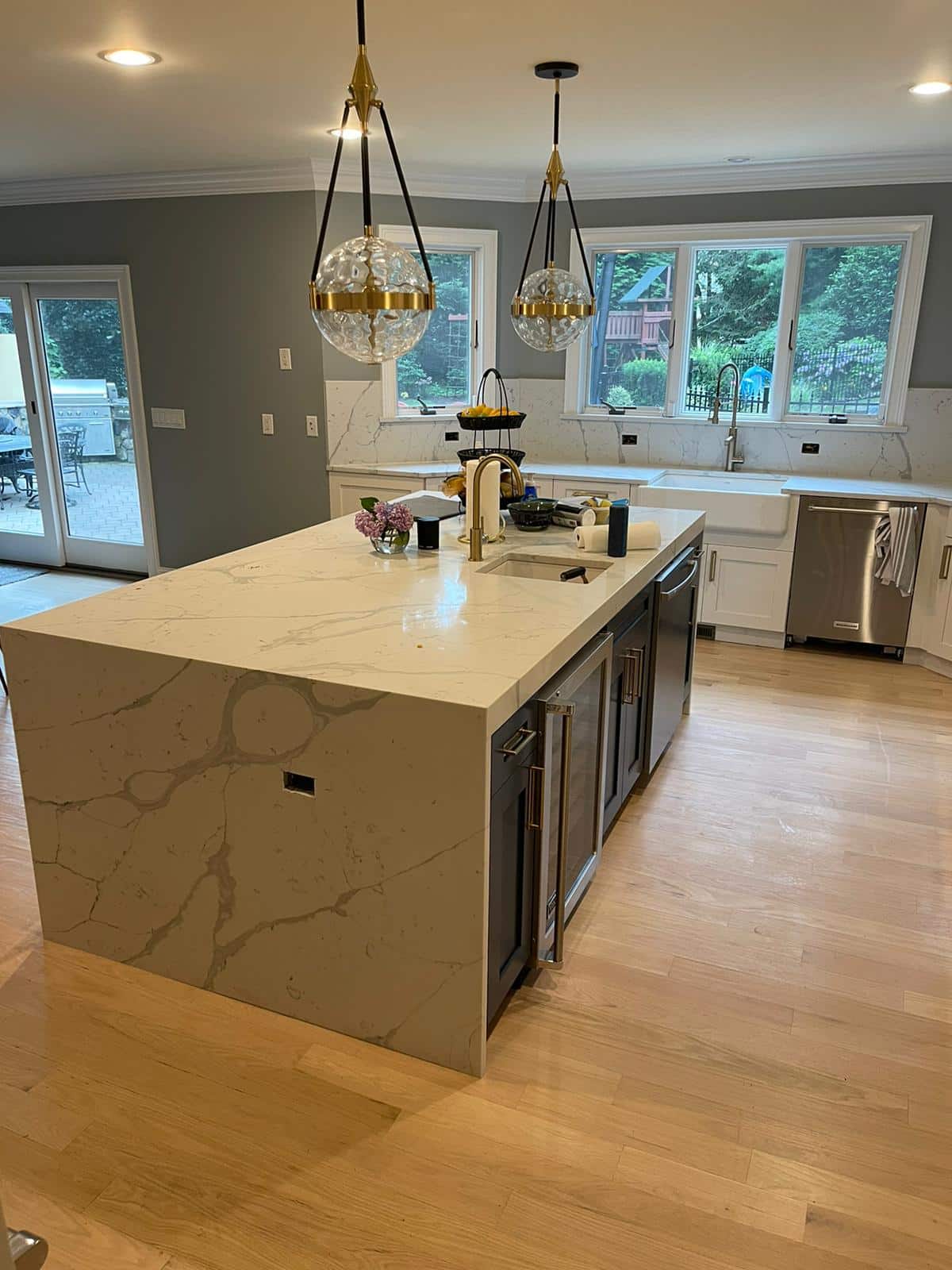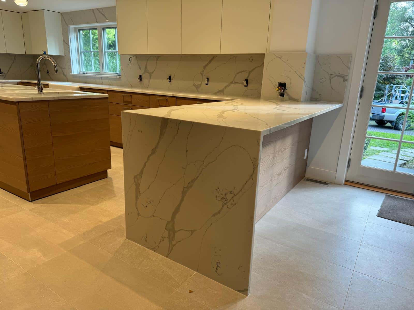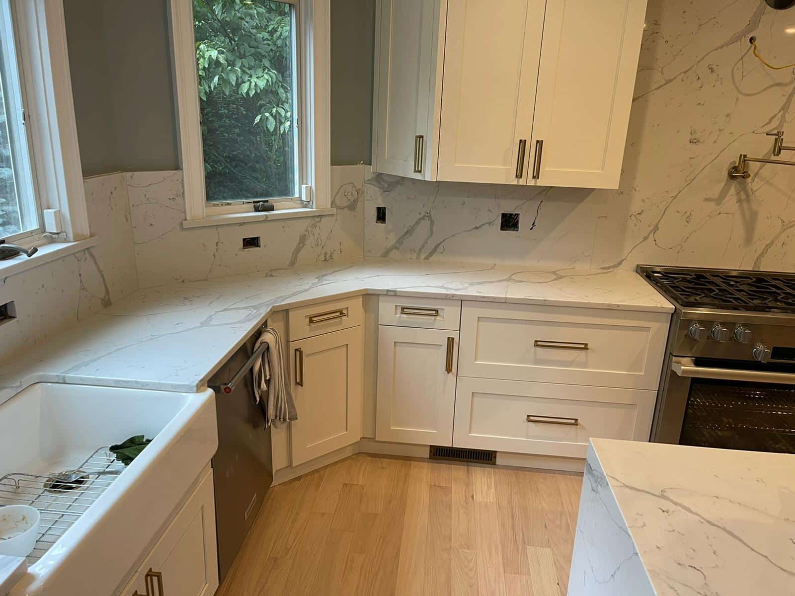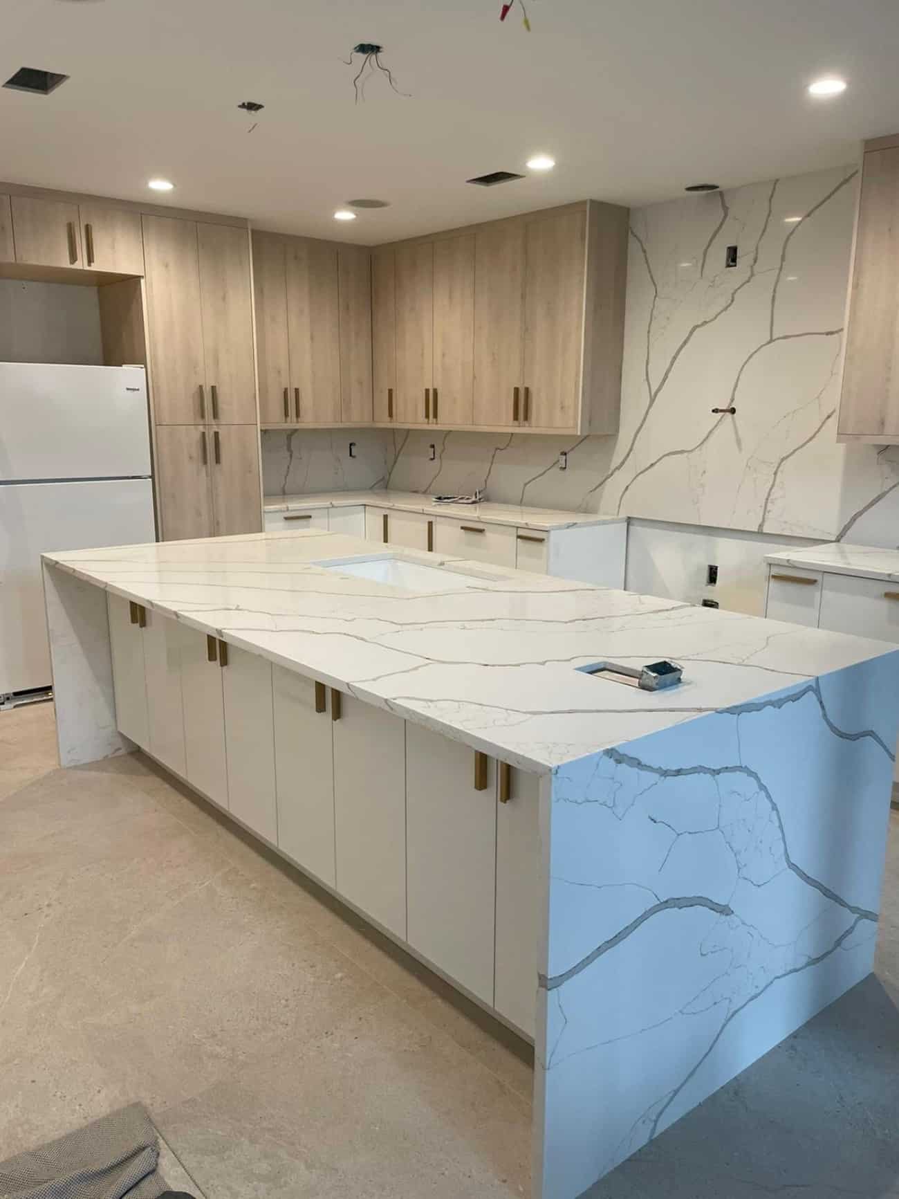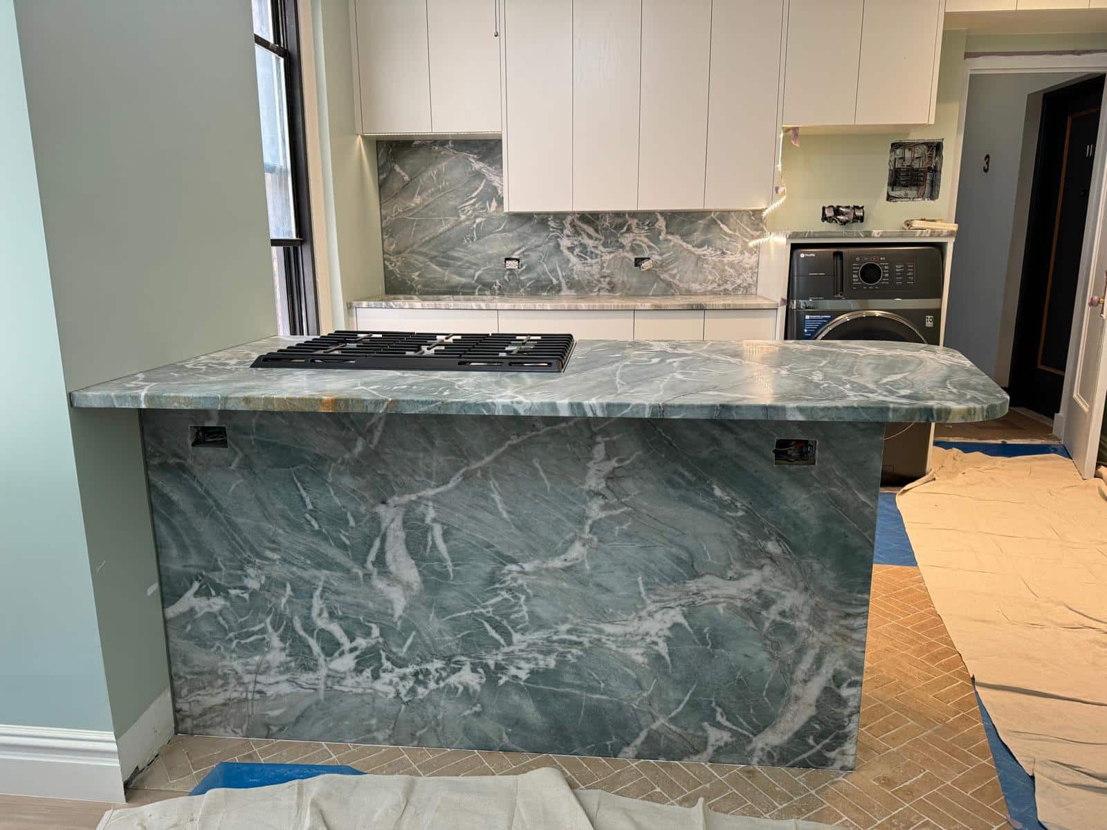As the one-stop shop for cabinets and countertops, we offer a wide range of products and services for kitchen and bath. We aim to make the remodel process as smooth as possible for you with our expertise and unprecedented assistance. That is why you can request a free quote or ask for an exclusive design from our professional designers. As Bergen Marble and Granite , we pride ourselves in our exceptional service and incomparable quality. As a result, you can demand free measurement, free estimation, free quote and more. In addition, you can see the slabs at our address before making a commitment. This way, you can make better decisions regarding your design. In Bergen Marble and Granite, we create one of a kind designs for your needs regarding fireplaces, countertops, cabinets, vanity tops, laundry rooms, kitchens, bathrooms and much more. You can discover both indoor and outdoor applications of our gorgeous marble slabs, durable and functional quartz slabs, functional and stylish kitchen cabinets, and much more in our portfolio below. In order to come up with tailor made solutions for your needs, we offer many different cabinet styles and top tier brands. In accordance with your taste, preferred layout, living space and budget, you can choose from thousands of different alternatives. If you want to create modern and sleek designs that brings a fresh approach to minimalism, you can opt for using flat panel cabinet doors. If you are after a more classic look, traditional raised panel cabinet doors will make you very happy. You can create inviting and warm spaces inspired by country style or recreate a cottage-like look in your kitchen. Bringing together modernity and functionality, shaker style cabinet doors will allow you to find a middle ground between the past and future. You can incorporate shaker cabinets into both traditional and contemporary designs. You can choose your favourite cabinet style and design from a wide range that encompasses best brands in the industry including Wolf Cabinets, Alusso Cabinets, Cubitac Cabinets, Adornus, St. Martin, FGM Cabinetry, Fabuwood and Forevermark Cabinetry. You can choose top quality countertops that will highlight the beauty of your kitchen cabinets while complementing your one of a kind interior design. In order to create tailor made solutions for your needs, we offer different materials for countertops: Durable and sleek granite, traditional and impressive marble, contemporary and improved quartzite or unique and colourful quartz. Moreover, you can integrate these marvellous slabs into your design as backsplashes as well. Browse our portfolio now to see the best countertop and cabinet applications.