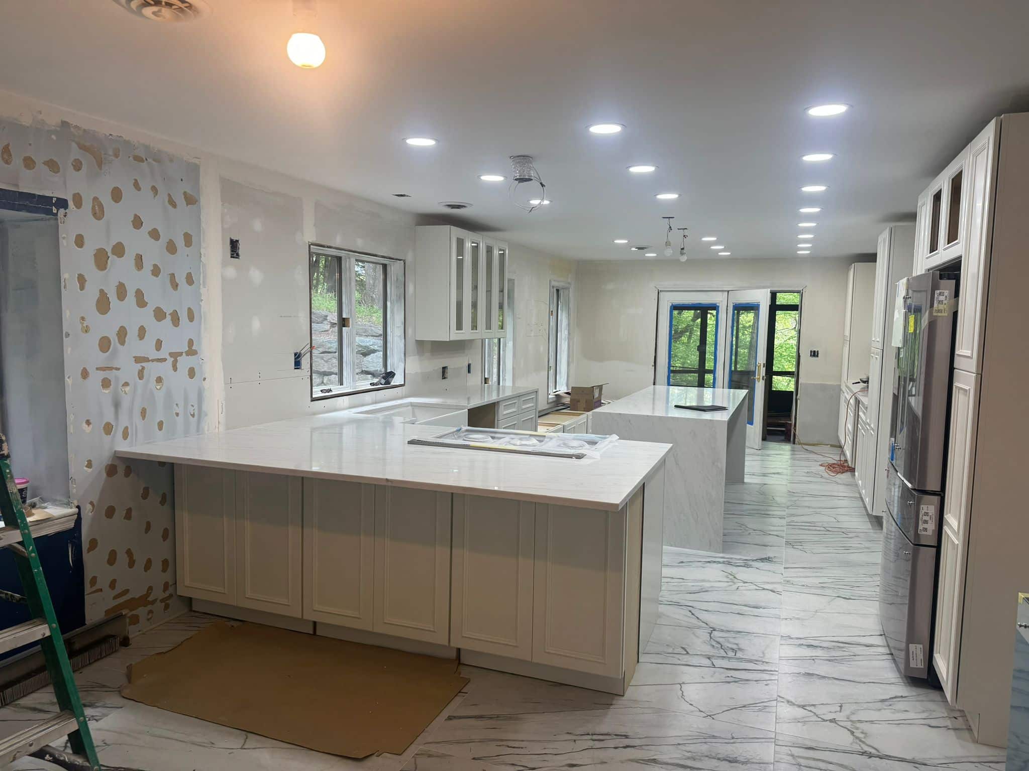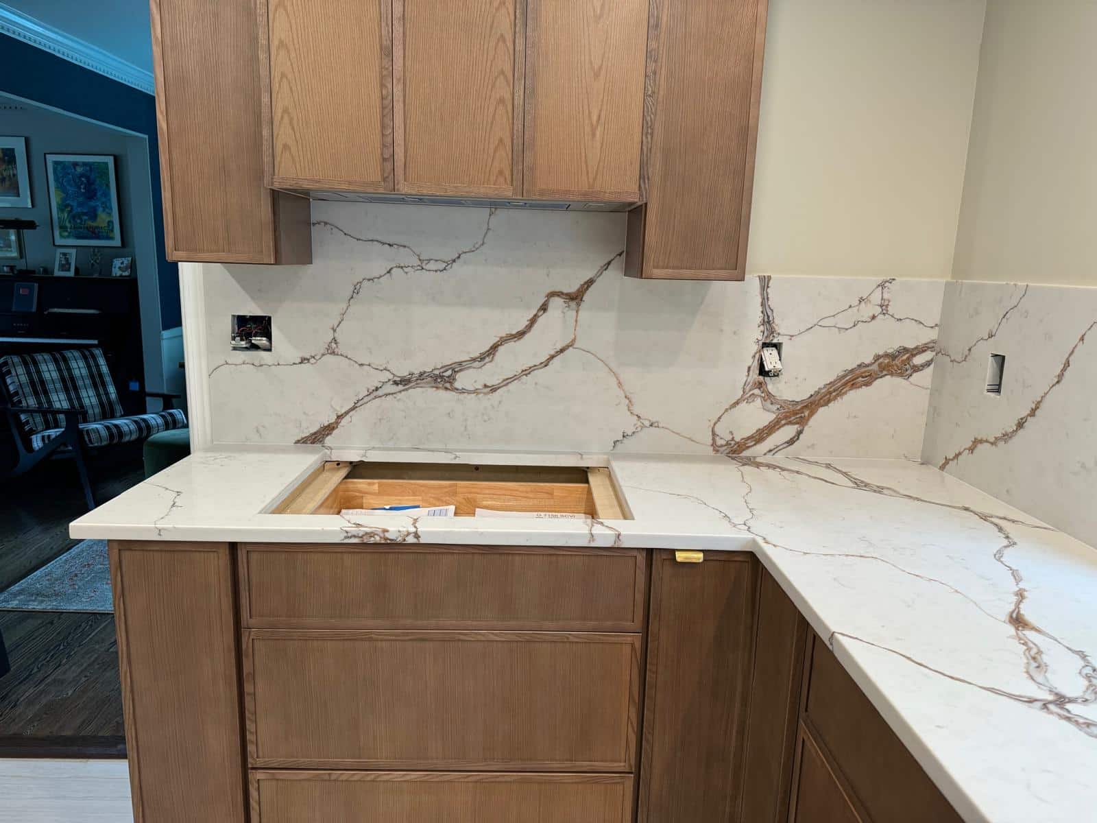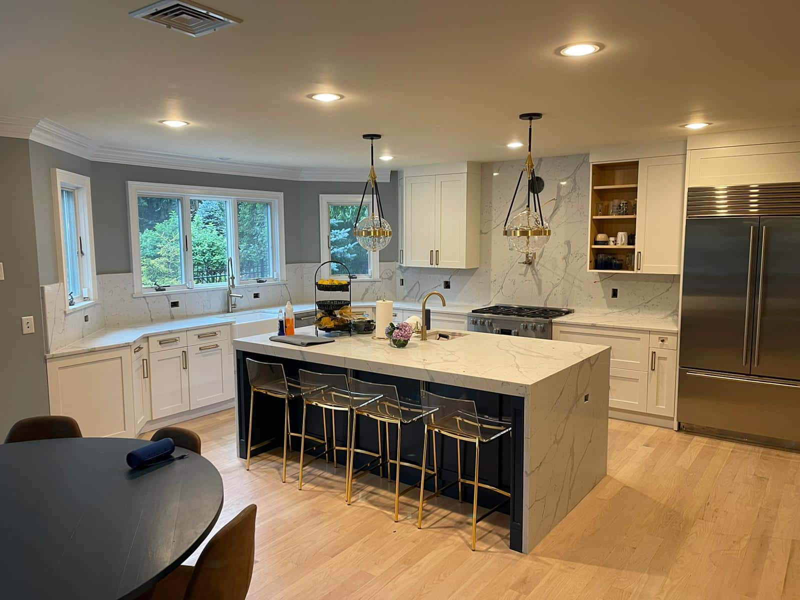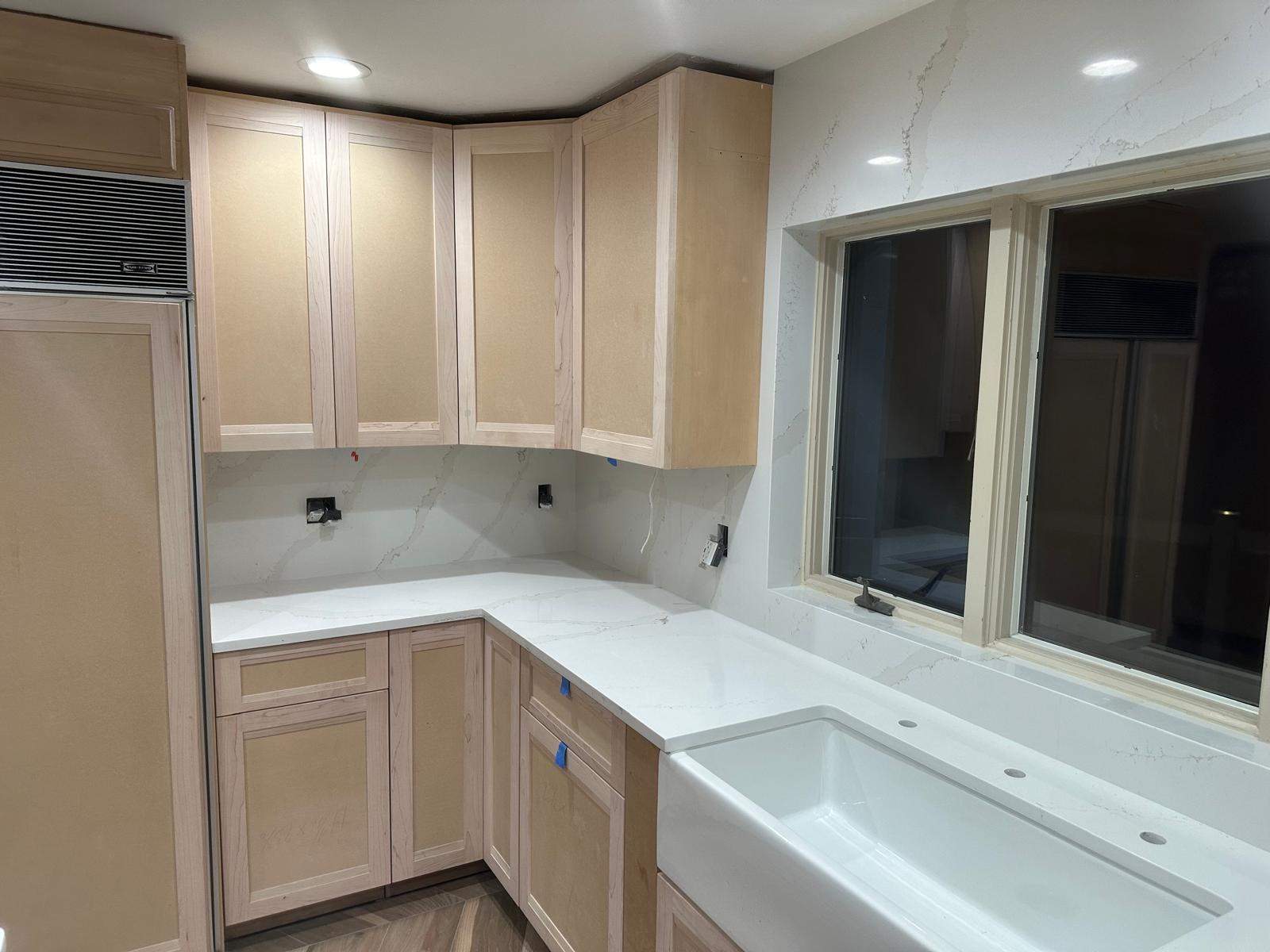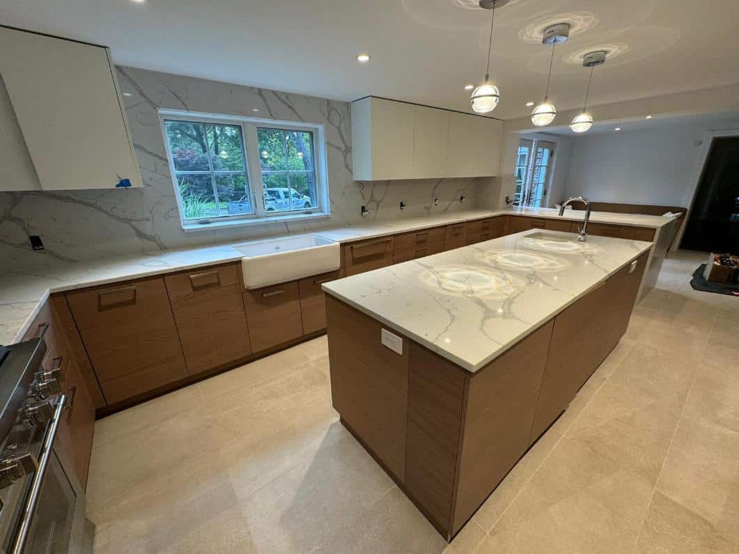 As the one-stop shop for cabinets and countertops, we offer a wide range of products and services for kitchen and bath. We aim to make the remodel process as smooth as possible for you with our expertise and unprecedented assistance. That is why you can request a free quote or ask for an exclusive design from our professional designers. As Bergen Marble and Granite , we pride ourselves in our exceptional service and incomparable quality. As a result, you can demand free measurement, free estimation, free quote and more. In addition, you can see the slabs at our address before making a commitment. This way, you can make better decisions regarding your design. In Bergen Marble and Granite, we create one of a kind designs for your needs regarding fireplaces, countertops, cabinets, vanity tops, laundry rooms, kitchens, bathrooms and much more. You can discover both indoor and outdoor applications of our gorgeous marble slabs, durable and functional quartz slabs, functional and stylish kitchen cabinets, and much more in our portfolio below. In order to come up with tailor made solutions for your needs, we offer many different cabinet styles and top tier brands. In accordance with your taste, preferred layout, living space and budget, you can choose from thousands of different alternatives. If you want to create modern and sleek designs that brings a fresh approach to minimalism, you can opt for using flat panel cabinet doors. If you are after a more classic look, traditional raised panel cabinet doors will make you very happy. You can create inviting and warm spaces inspired by country style or recreate a cottage-like look in your kitchen. Bringing together modernity and functionality, shaker style cabinet doors will allow you to find a middle ground between the past and future. You can incorporate shaker cabinets into both traditional and contemporary designs. You can choose your favourite cabinet style and design from a wide range that encompasses best brands in the industry including Wolf Cabinets, Alusso Cabinets, Cubitac Cabinets, Adornus, St. Martin, FGM Cabinetry, Fabuwood and Forevermark Cabinetry. You can choose top quality countertops that will highlight the beauty of your kitchen cabinets while complementing your one of a kind interior design. In order to create tailor made solutions for your needs, we offer different materials for countertops: Durable and sleek granite, traditional and impressive marble, contemporary and improved quartzite or unique and colourful quartz. Moreover, you can integrate these marvellous slabs into your design as backsplashes as well. Browse our portfolio now to see the best countertop and cabinet applications.