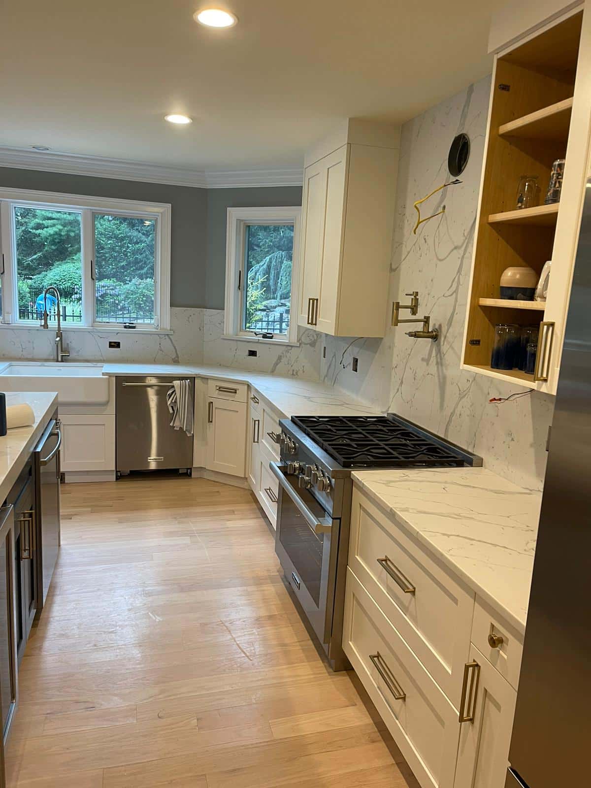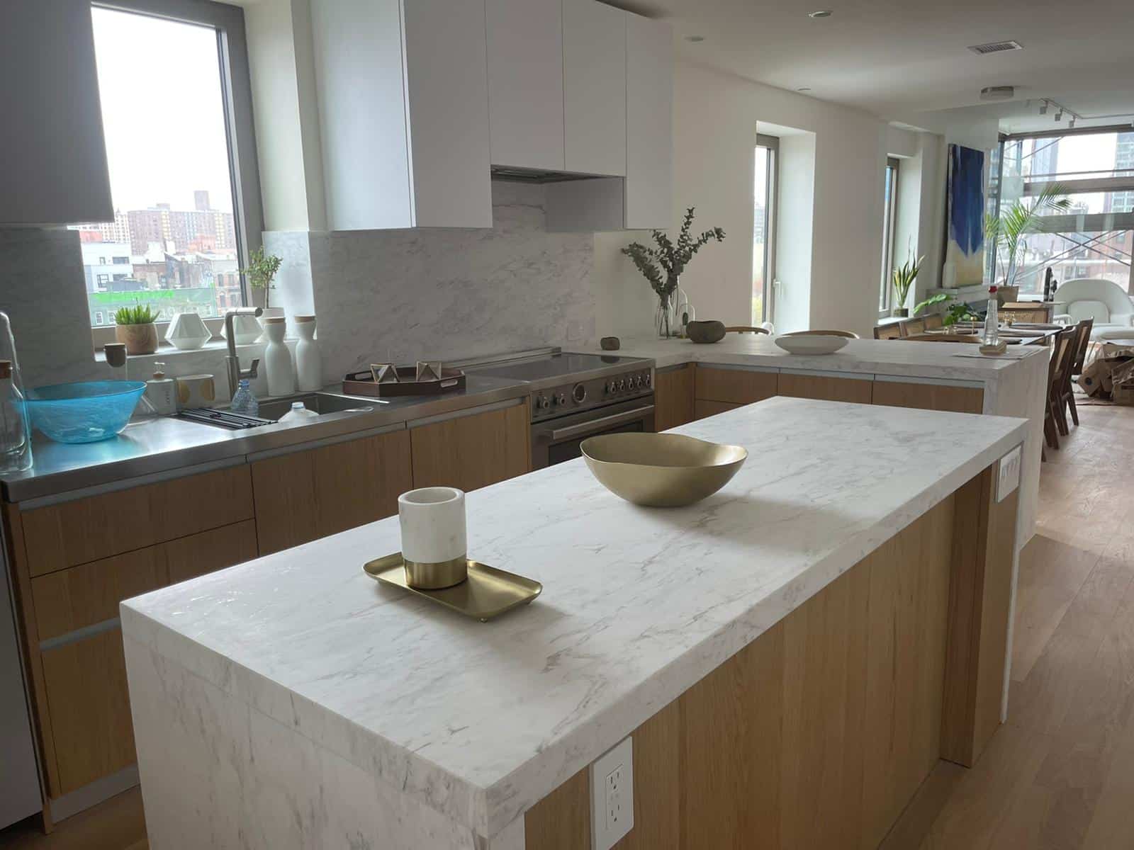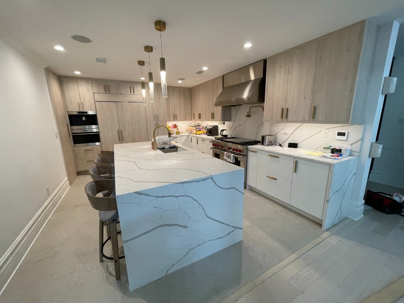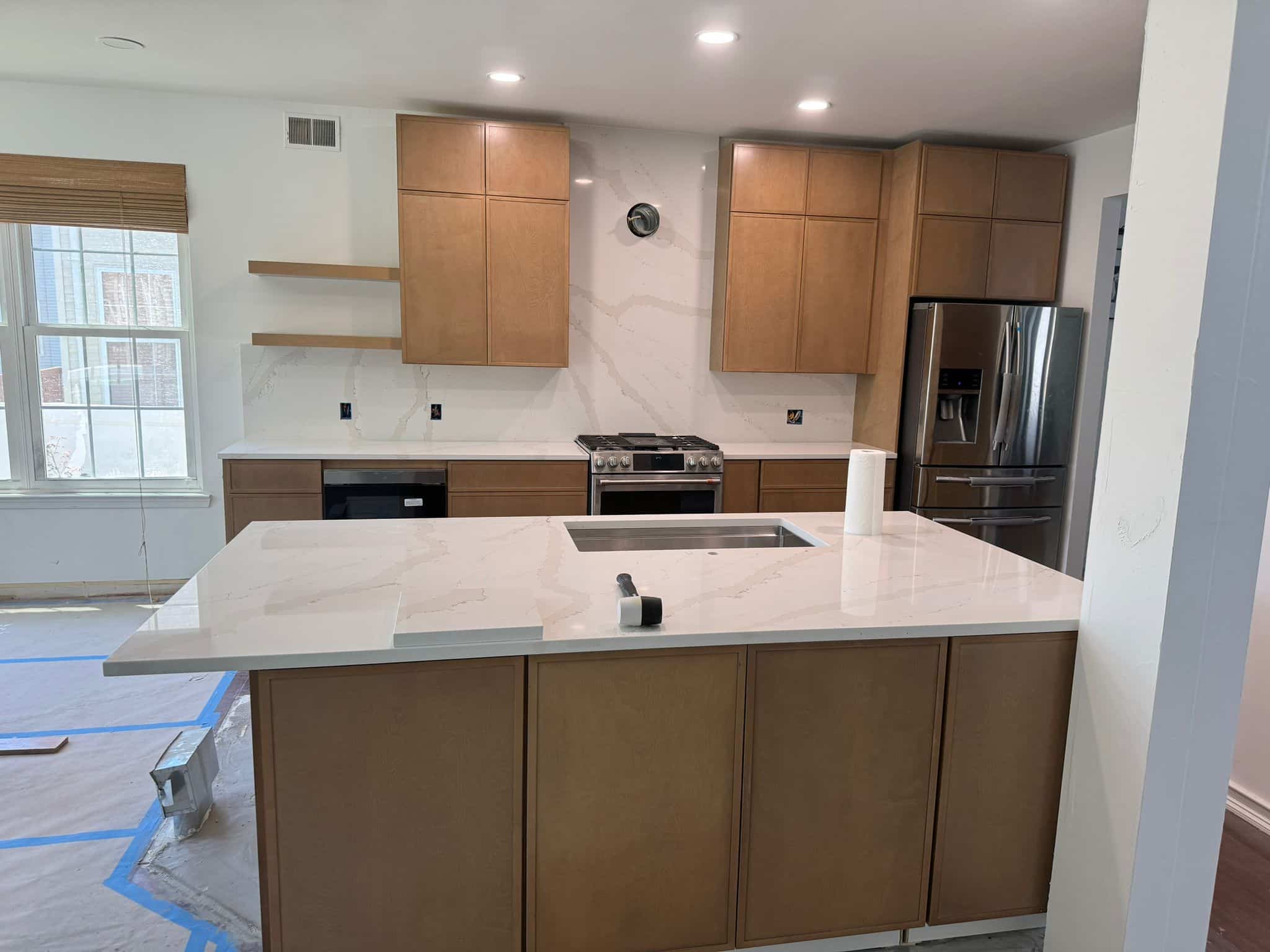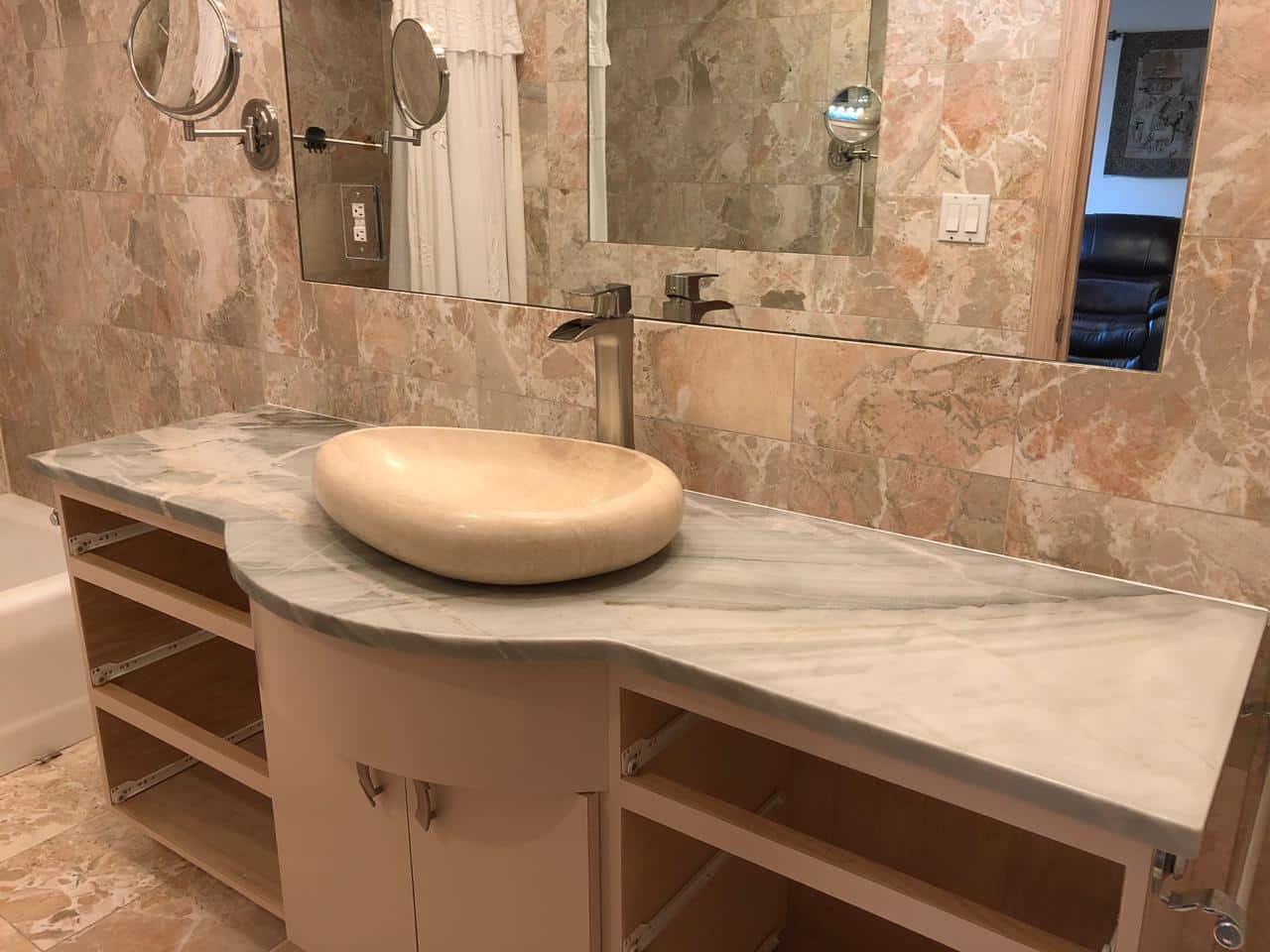 As the one-stop shop for cabinets and countertops, we offer a wide range of products and services for kitchen and bath. We aim to make the remodel process as smooth as possible for you with our expertise and unprecedented assistance. That is why you can request a free quote or ask for an exclusive design from our professional designers. As Bergen Marble and Granite , we pride ourselves in our exceptional service and incomparable quality. As a result, you can demand free measurement, free estimation, free quote and more. In addition, you can see the slabs at our address before making a commitment. This way, you can make better decisions regarding your design. In Bergen Marble and Granite, we create one of a kind designs for your needs regarding fireplaces, countertops, cabinets, vanity tops, laundry rooms, kitchens, bathrooms and much more. You can discover both indoor and outdoor applications of our gorgeous marble slabs, durable and functional quartz slabs, functional and stylish kitchen cabinets, and much more in our portfolio below. In order to come up with tailor made solutions for your needs, we offer many different cabinet styles and top tier brands. In accordance with your taste, preferred layout, living space and budget, you can choose from thousands of different alternatives. If you want to create modern and sleek designs that brings a fresh approach to minimalism, you can opt for using flat panel cabinet doors. If you are after a more classic look, traditional raised panel cabinet doors will make you very happy. You can create inviting and warm spaces inspired by country style or recreate a cottage-like look in your kitchen. Bringing together modernity and functionality, shaker style cabinet doors will allow you to find a middle ground between the past and future. You can incorporate shaker cabinets into both traditional and contemporary designs. You can choose your favourite cabinet style and design from a wide range that encompasses best brands in the industry including Wolf Cabinets, Alusso Cabinets, Cubitac Cabinets, Adornus, St. Martin, FGM Cabinetry, Fabuwood and Forevermark Cabinetry. You can choose top quality countertops that will highlight the beauty of your kitchen cabinets while complementing your one of a kind interior design. In order to create tailor made solutions for your needs, we offer different materials for countertops: Durable and sleek granite, traditional and impressive marble, contemporary and improved quartzite or unique and colourful quartz. Moreover, you can integrate these marvellous slabs into your design as backsplashes as well. Browse our portfolio now to see the best countertop and cabinet applications.