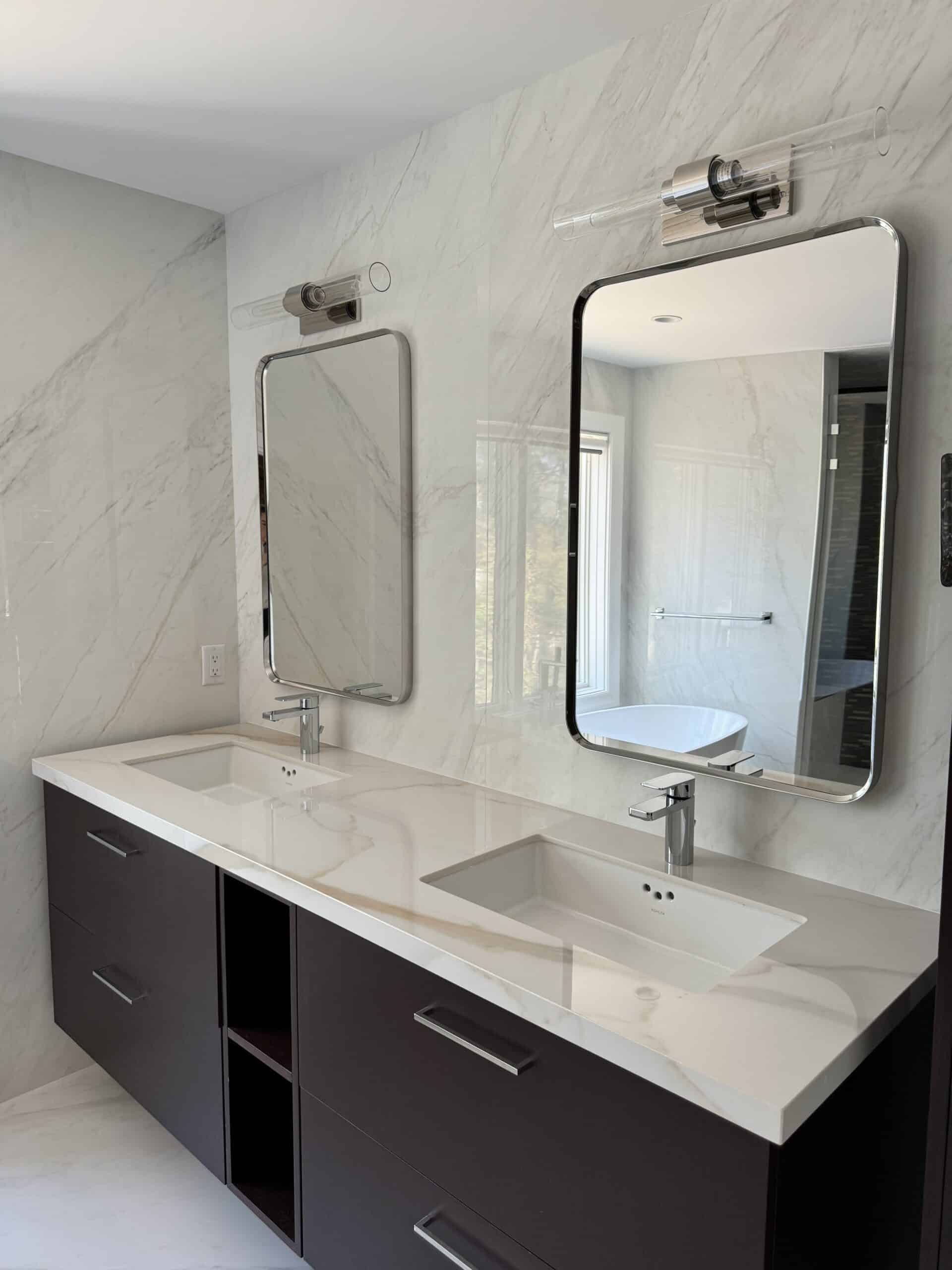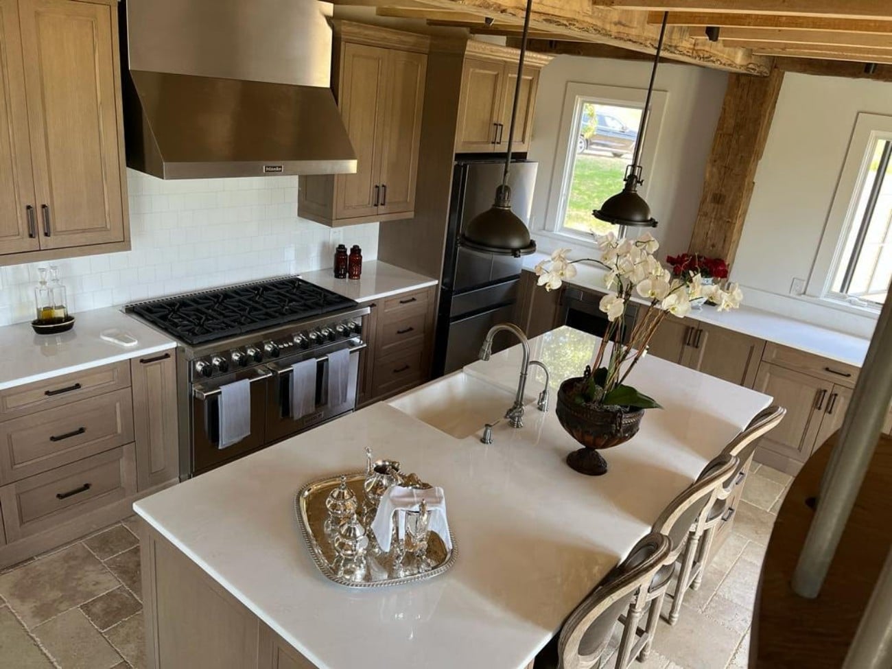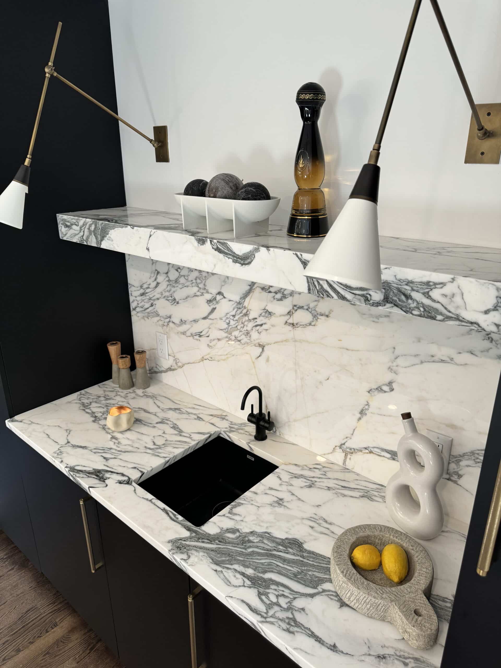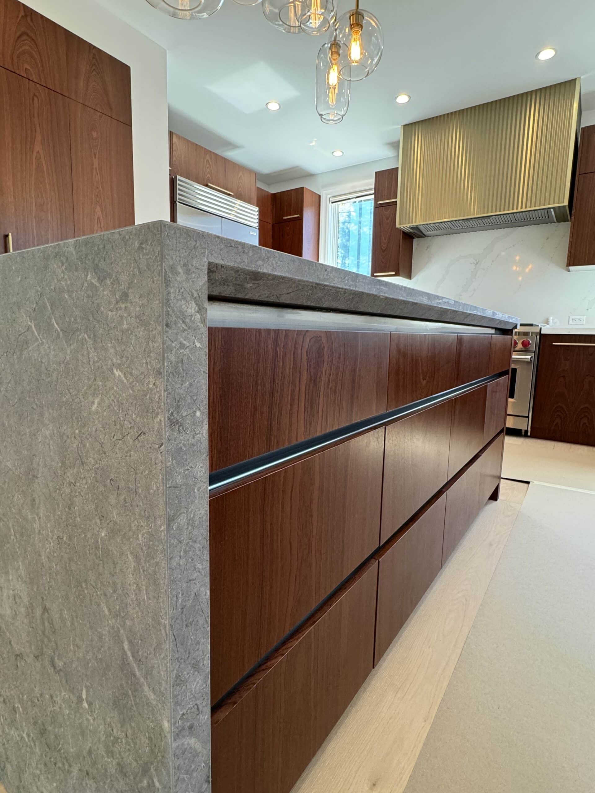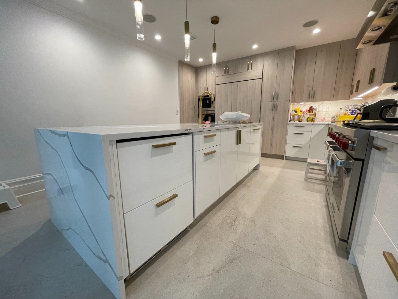 As the one-stop shop for cabinets and countertops, we offer a wide range of products and services for kitchen and bath. We aim to make the remodel process as smooth as possible for you with our expertise and unprecedented assistance. That is why you can request a free quote or ask for an exclusive design from our professional designers. As Bergen Marble and Granite , we pride ourselves in our exceptional service and incomparable quality. As a result, you can demand free measurement, free estimation, free quote and more. In addition, you can see the slabs at our address before making a commitment. This way, you can make better decisions regarding your design. In Bergen Marble and Granite, we create one of a kind designs for your needs regarding fireplaces, countertops, cabinets, vanity tops, laundry rooms, kitchens, bathrooms and much more. You can discover both indoor and outdoor applications of our gorgeous marble slabs, durable and functional quartz slabs, functional and stylish kitchen cabinets, and much more in our portfolio below. In order to come up with tailor made solutions for your needs, we offer many different cabinet styles and top tier brands. In accordance with your taste, preferred layout, living space and budget, you can choose from thousands of different alternatives. If you want to create modern and sleek designs that brings a fresh approach to minimalism, you can opt for using flat panel cabinet doors. If you are after a more classic look, traditional raised panel cabinet doors will make you very happy. You can create inviting and warm spaces inspired by country style or recreate a cottage-like look in your kitchen. Bringing together modernity and functionality, shaker style cabinet doors will allow you to find a middle ground between the past and future. You can incorporate shaker cabinets into both traditional and contemporary designs. You can choose your favourite cabinet style and design from a wide range that encompasses best brands in the industry including Wolf Cabinets, Alusso Cabinets, Cubitac Cabinets, Adornus, St. Martin, FGM Cabinetry, Fabuwood and Forevermark Cabinetry. You can choose top quality countertops that will highlight the beauty of your kitchen cabinets while complementing your one of a kind interior design. In order to create tailor made solutions for your needs, we offer different materials for countertops: Durable and sleek granite, traditional and impressive marble, contemporary and improved quartzite or unique and colourful quartz. Moreover, you can integrate these marvellous slabs into your design as backsplashes as well. Browse our portfolio now to see the best countertop and cabinet applications.
