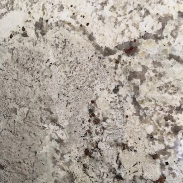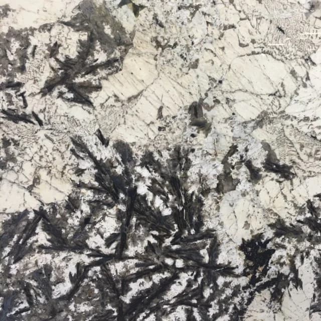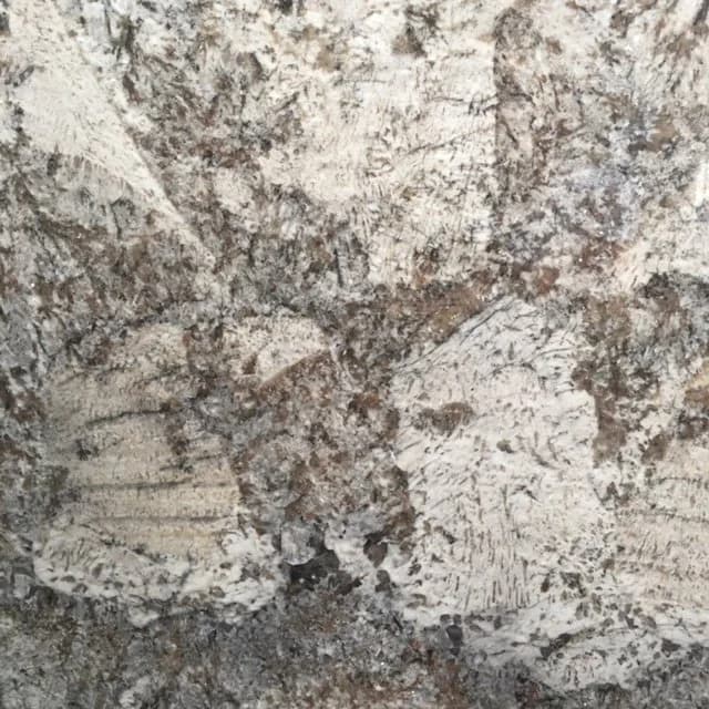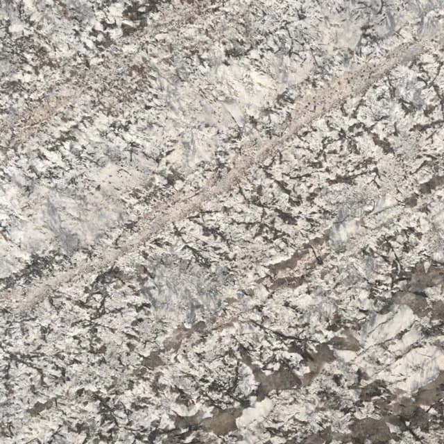 Delicatus white granite has a soft white and beige background. The dark and rich veins beautifully contrast the background. Dark brown, rust, and black veins and specks of this stone will create a magical feeling when used as a kitchen countertop.