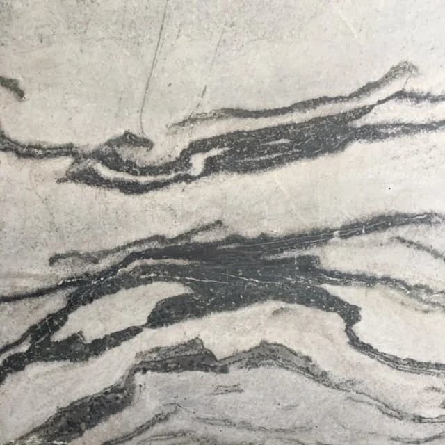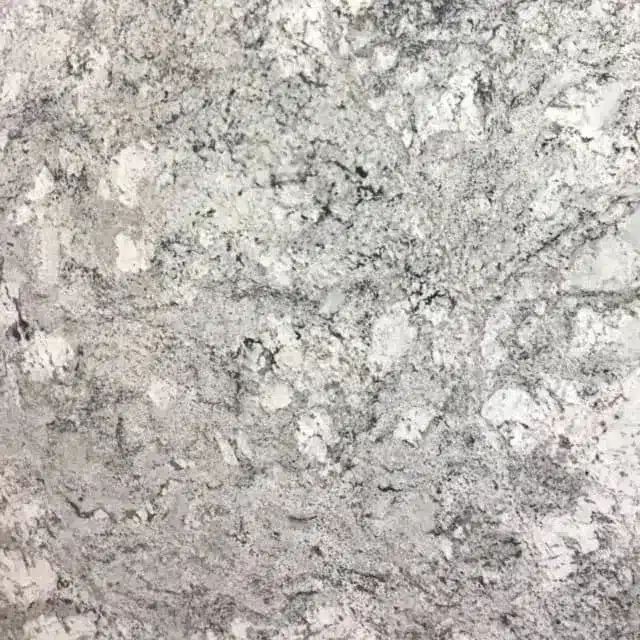 Alaska white is a light-colored natural stone with darker minerals running throughout. The background has shades of silver and white. The minerals add warm neutral tones and onyx hues, thus creating a mesmerizing piece.